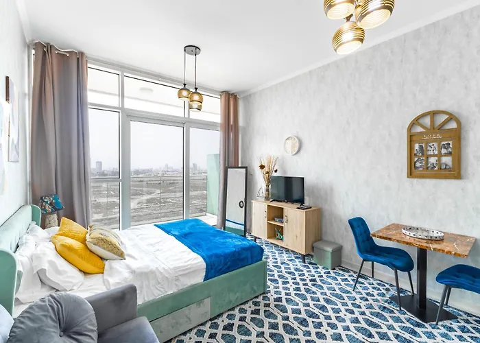 El Studio In Damac Hills - Luxurious Living With Premium Amenities, By Think Realty Dubái, situado a unos 1 km de Trump International Golf Course, ofrece Wi-Fi tanto para estancias de negocios como de ocio. Desde el apartamento de 38 m², el Club de Golf Arabian Ranches está a 10 minutos en coche.